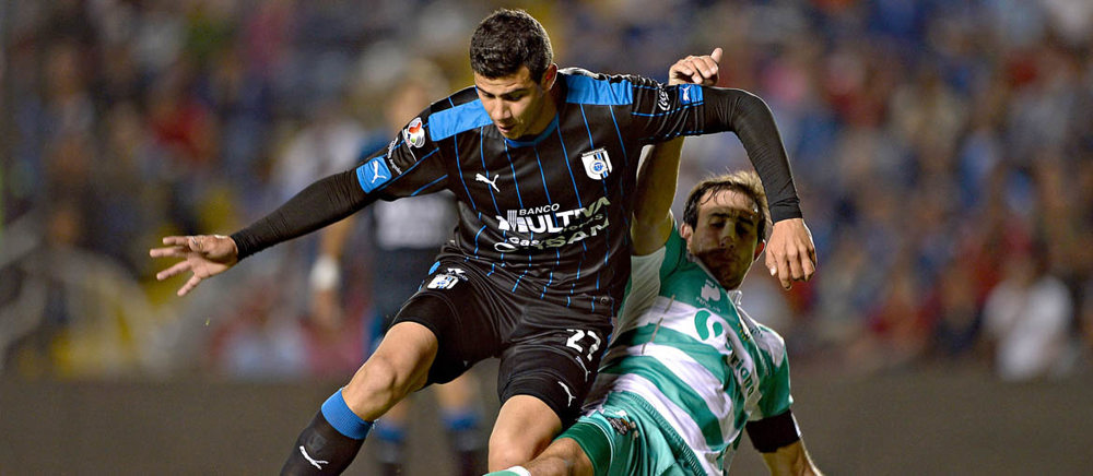 Luis Madrigal (black jersey) and Queretaro fell to Santos in Liga MX Apertura play on August 11, 2015. (Photo: Mexsport)
