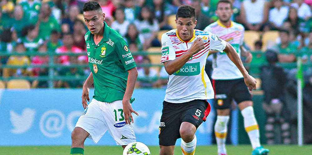 Action from the CONCACAF Champions League game between Leon (white jersey) and visiting Herediano (white jersey) on August 27, 2014, in Leon, Mexico. (Photo: Mexsport)