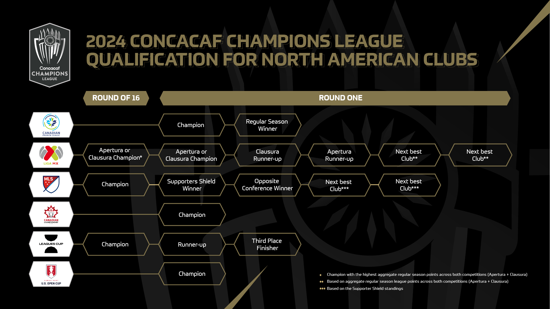 MLS: Should one (OR more) club(s) hold multiple CCL qualification slots, then the MLS club, regardless of Conference, which has accumulated the most regular season league points will earn the slot. Under the new Concacaf Champions League format and qualification criteria, all MLS clubs (USA or Canada based) can qualify for the 2024 CCL, and future editions, through MLS slots.