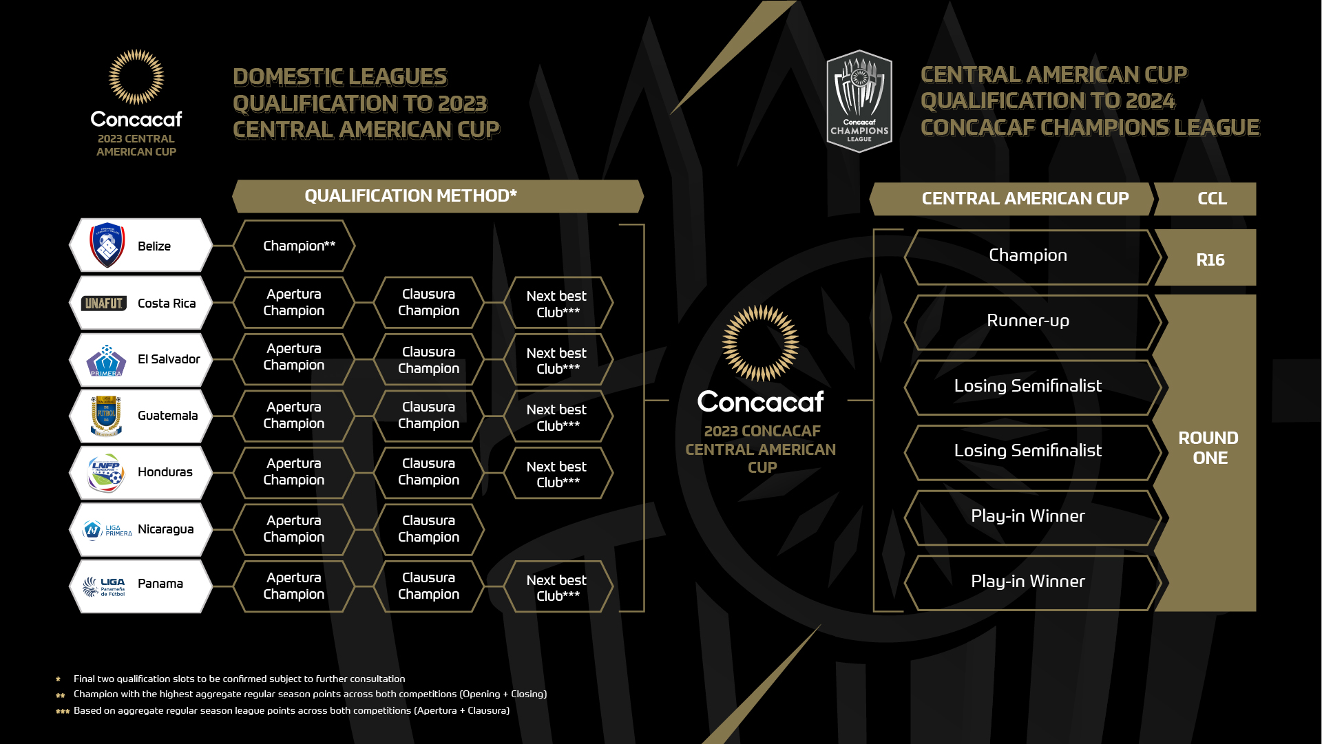 The number of slots per country and the qualification criteria for each slot for the 2023 Concacaf Central American Cup will be as follows (below graphic).