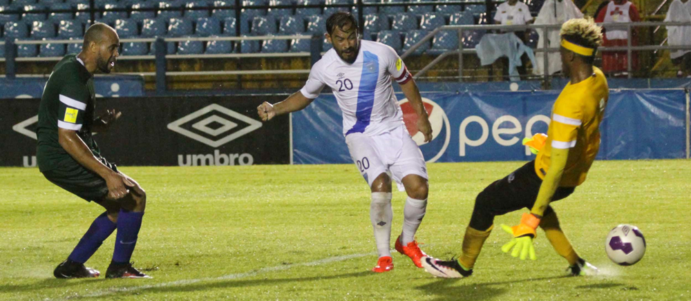 Carlos Ruiz (white jersey) is shown above playing for Guatemala in a World Cup qualifier against visiting St. Vincent & the Grenadines on September 6, 2016, in Guatemala City, Guatemala. (Photo: Juan Meoño)