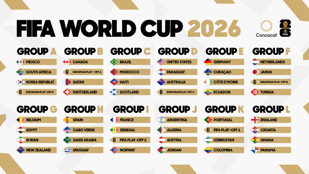 Teams were drawn into 12 groups during Friday’s draw in Washington, D.C. The event determined the group stage matchups and subsequent ties for the expanded 48-team edition, which will be hosted in Canada, Mexico, and the United States of America.