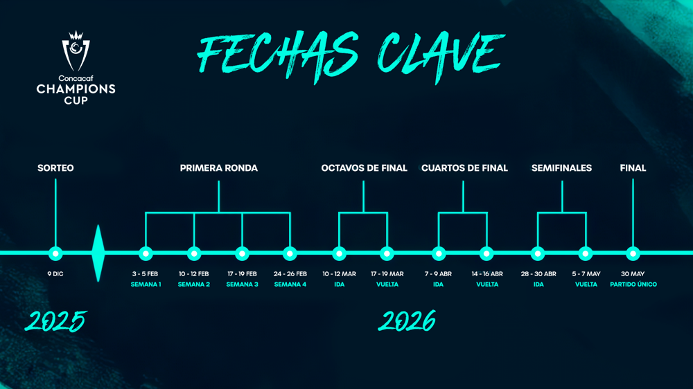 La edición 2026 de la Copa de Campeones Concacaf se jugará en cinco rondas, de febrero a mayo:
