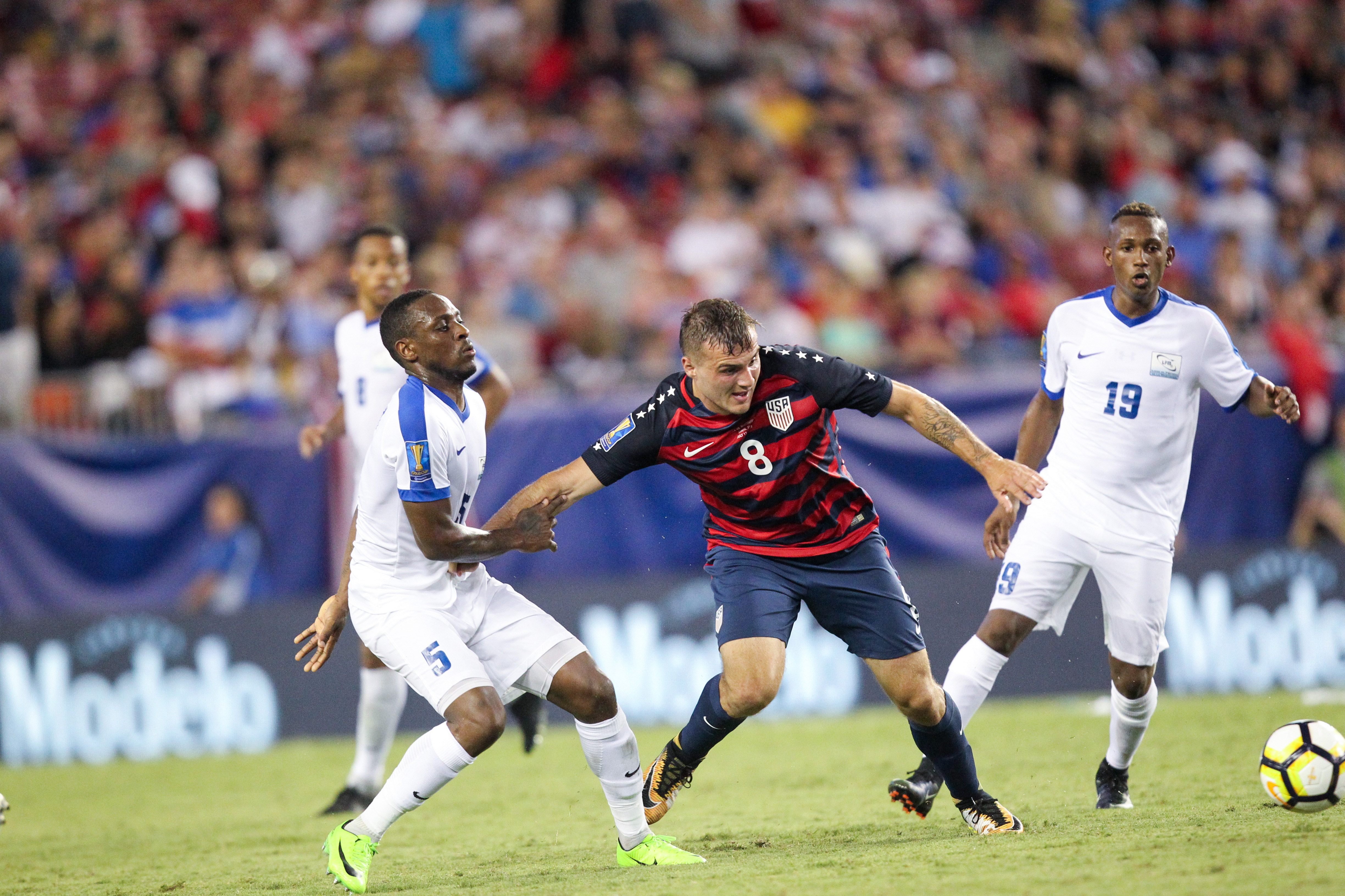 El entrenador de Estados Unidos, Bruce Arena, realizó ocho cambios en su alineación titular con relación a la utilizada en el 1-1 del sábado contra Panamá. Los únicos jugadores que conservaron sus posiciones fueron el portero Brad Guzan, el defensa central Omar González y el mediocampista Kellyn Acosta.