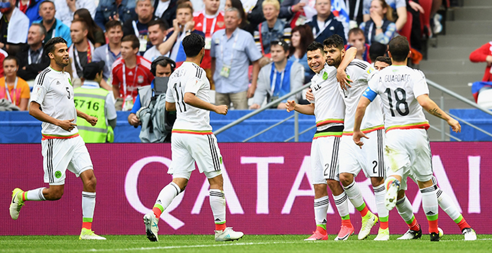 KAZAN, Russia – Mexico (2W-1D-0L, 7 points) earned a place in the FIFA Confederations Cup for a fourth time with a 2-1 victory over host and 10-man Russia (1-0-2, 3) on Saturday in front of a capacity crowd of 41,585 at Kazan Arena.