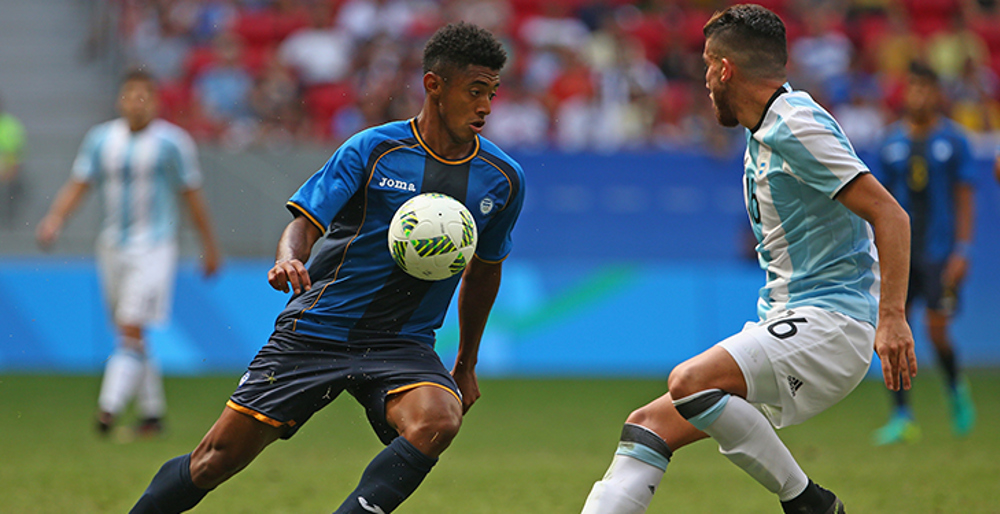 Honduras’ Antony Lozano (left) shown in 2016 Olympic Games action against Argentina. (Photo: FIFA via Getty Images).