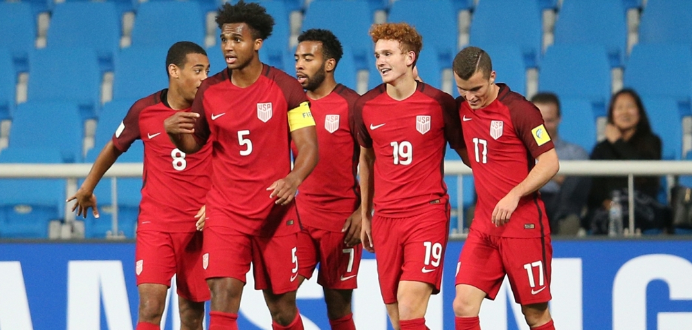 El estadounidense Josh Sargent (# 19) celebra con sus compañeros después de anotar contra Senegal en la Copa Mundial Sub-20 de la FIFA el 25 de mayo 2017 en Incheon, República de Corea. (Foto: FIFA a través de Getty Images)