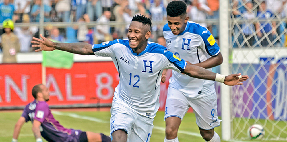Honduras' Romell Quioto (#12) celebrates after scoring against visiting Canada in a World Cup qualifier on September 2, 2016, in San Pedro Sula. (Photo: Mexsport)